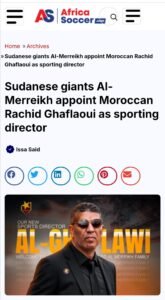 أبدى موقع AfricaSoccer والذي يعد من أكبر وأهم المواقع المختصة بكرة القدم الأفريقية، اهتماماً خاصاً بتعاقد المريخ مع المغربي رشيد الغفلاوي لتولي منصب المدير الرياضي، معتبراً الخطوة جزءاً من توجه استراتيجي جديد يسعى من خلاله “العملاق الأحمر” إلى تحديث بنيته الإدارية وتعزيز طموحاته القارية.