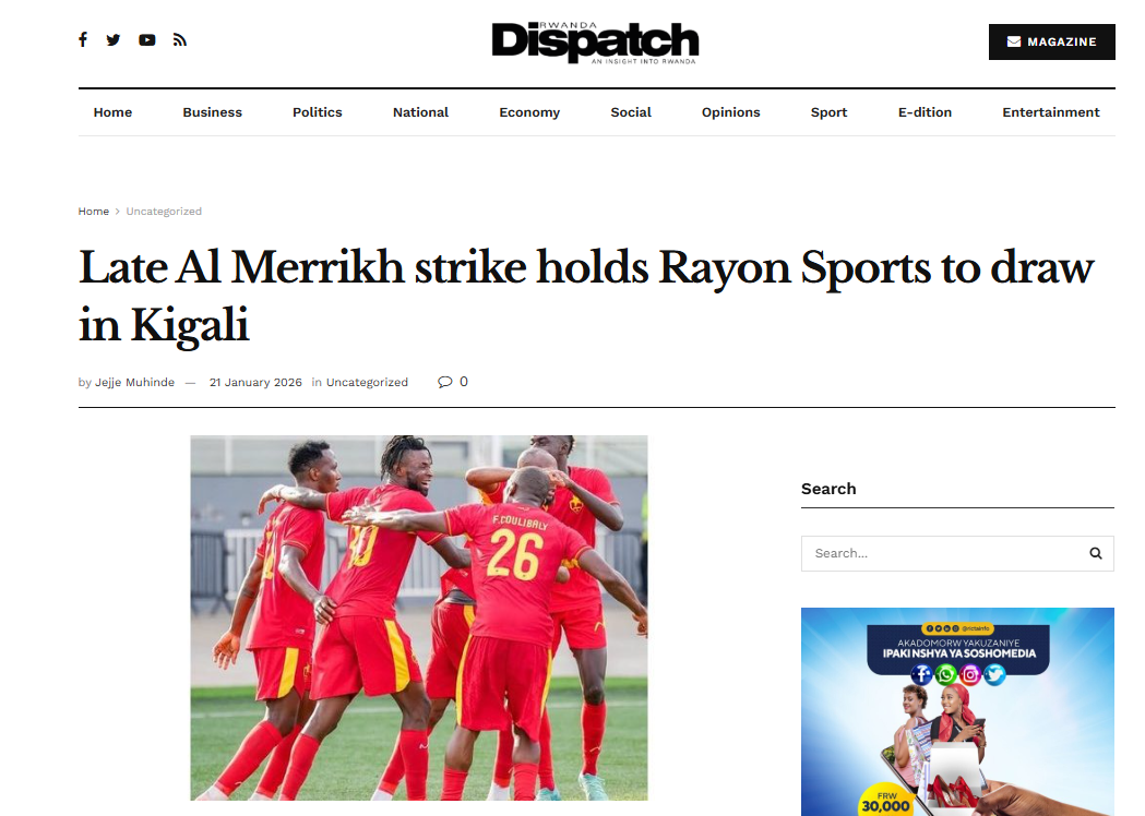 مجلة ديسباتش نيوز الرواندية : تعادل بطعم الخسارة أمام المريخ يُغضب جماهير رايون في كيغالي