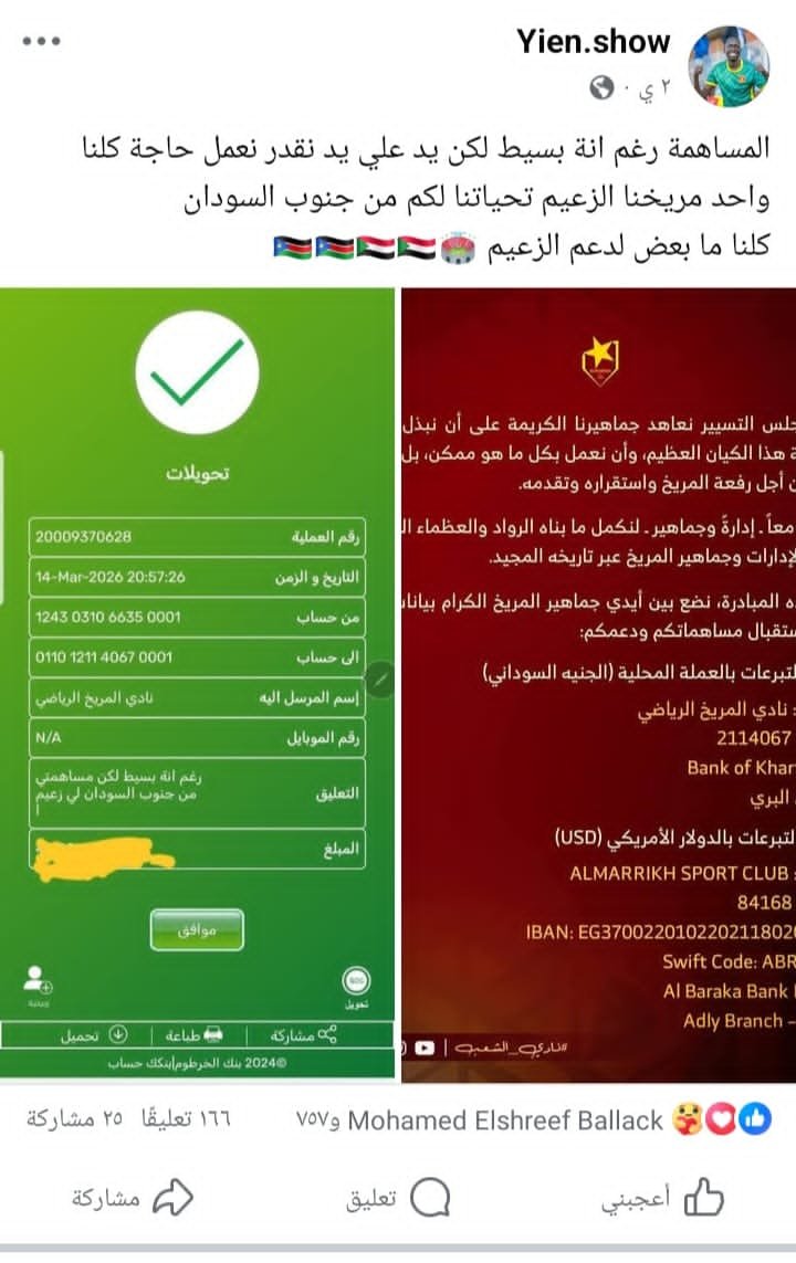 تفاعل عشاق المريخ في جنوب السودان مع مبادرة “دولار من أجل المريخ”، حيث أعلن عدد منهم عن تبرعاتهم لدعم النادي. الناشط ومشجع المريخ بانتيو والزعيم “يين شو” نشر مساهمته في المبادرة عبر فيسبوك، ودع الجماهير للمشاركة قائلاً: “نتمنى من كل الجماهير أن تساهم في المبادرة… حبنا للمريخ لا يقاس بثمن”.