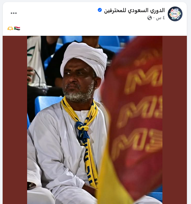 واختارت الصفحة الرسمية للدوري السعودي الاحتفاء بالمشجع بطريقة لافتة، إذ علّقت على الصورة باستخدام رموز تعبيرية تجمع بين القلب وعلم السودان، في رسالة رمزية حملت معاني الحب والتضامن، ونالت إشادة كبيرة من المتابعين.